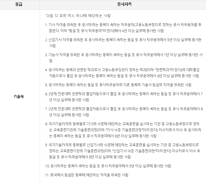 응시 자격은 모든 자격증과 마찬가지로 아래와 같은 자격을 갖춰야만 응시할 자격이 주어집니다.